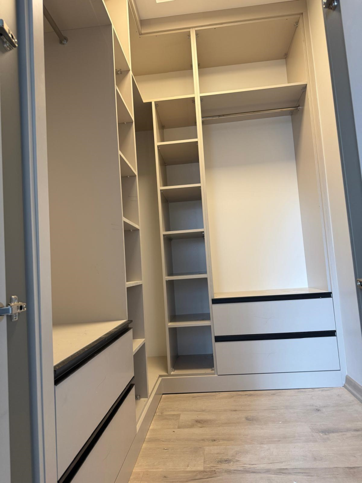 Üretimde neme ve darbeye dayanıklı malzemeler, kaliteli donanımlar (menteşe, ray, askılık sistemleri) kullanılır. Fonksiyonellik kadar estetik de ön plandadır. Dilerseniz ayna, led ışık, cam bölme gibi detaylar da eklenebilir.